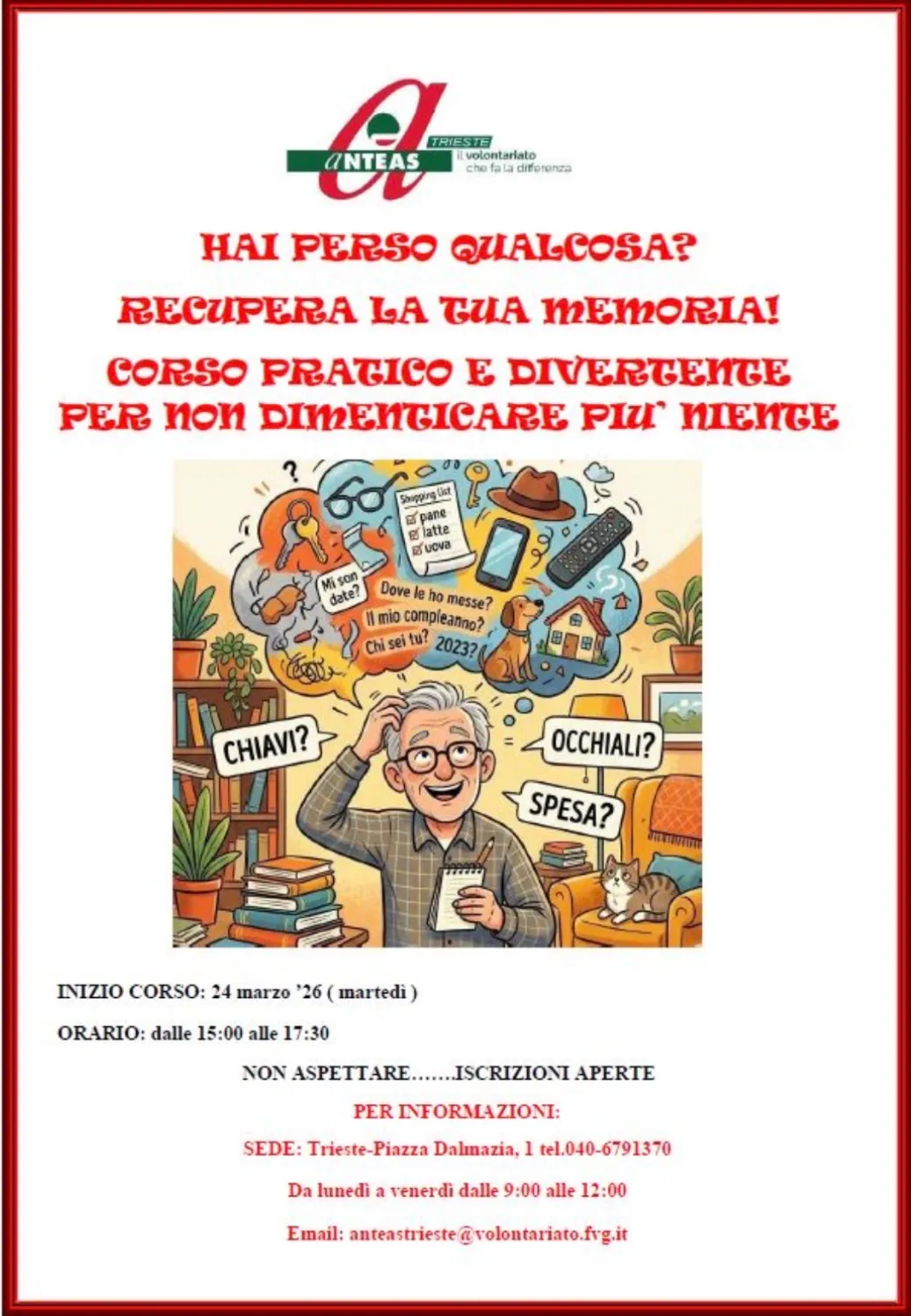 16 Marzo 2026Vi comunichiamo che riproponiamo il corso di potenziamento della memoria.