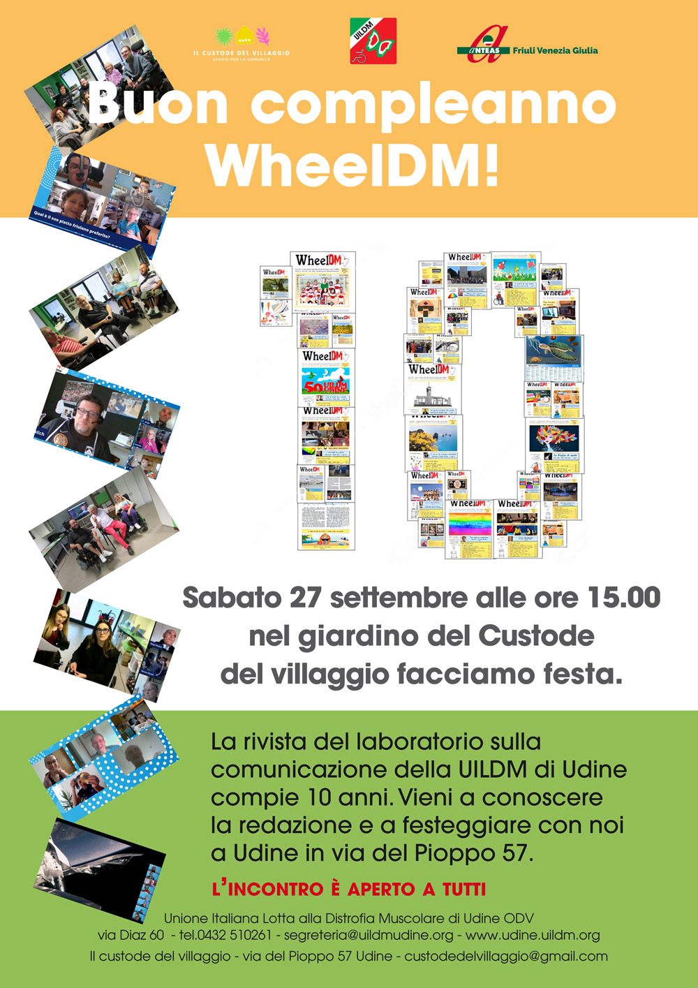 19 Settembre 2025Il 27 settembre alle ore 15 nel giardino della Custode del villaggio si svolgerà una festa per i 10 anni della rivista del laboratorio sulla comunicazione della UILDM di Udine. L’incontro sarà aperto a tutti coloro che sono interessati a partecipare per conoscere la redazione e per festeggiarla.