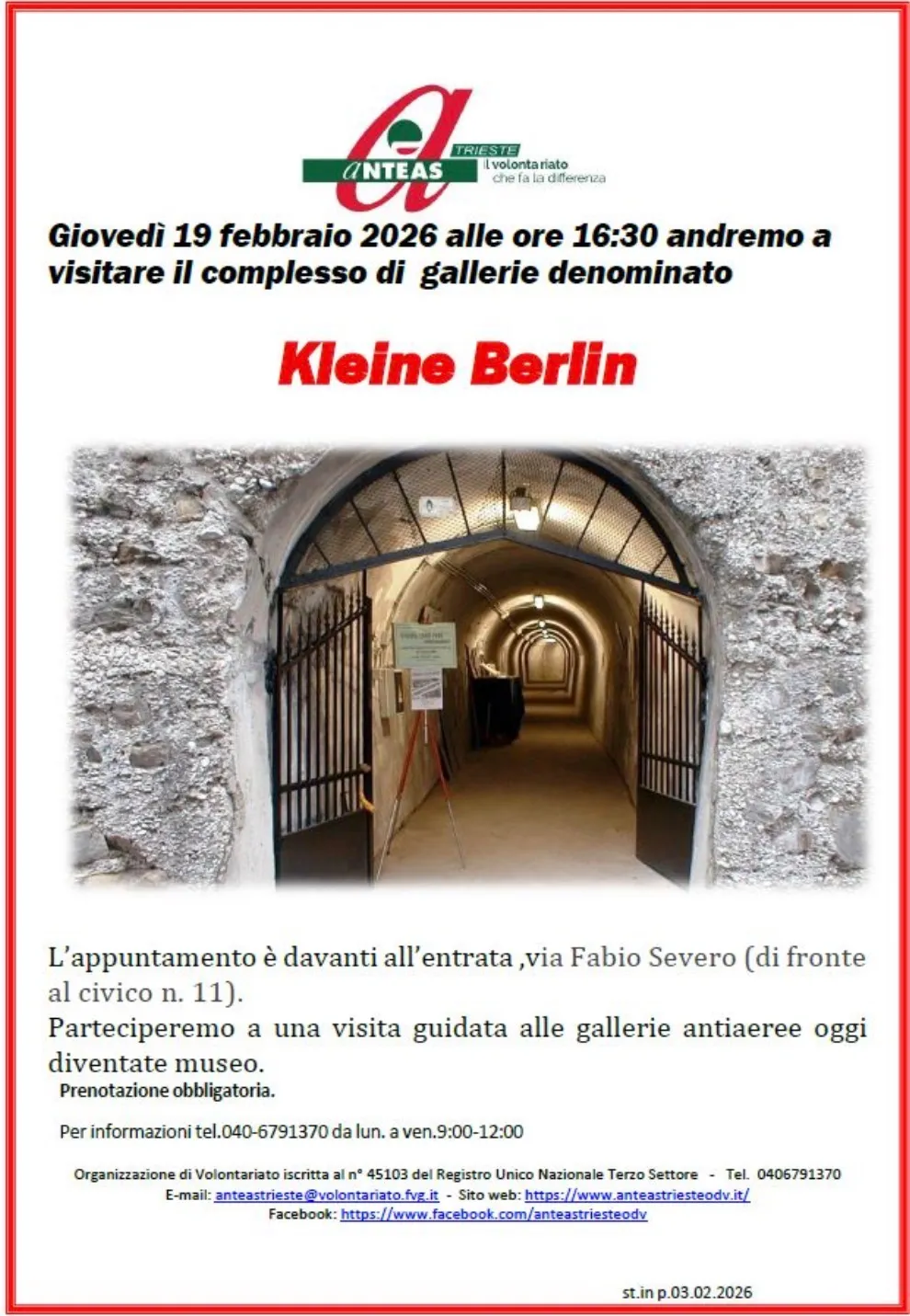 Giovedì 19 febbraio 2026 alle ore 16:30 andremo a visitare Kleine Berlin, un ampio sistema di gallerie antiaeree